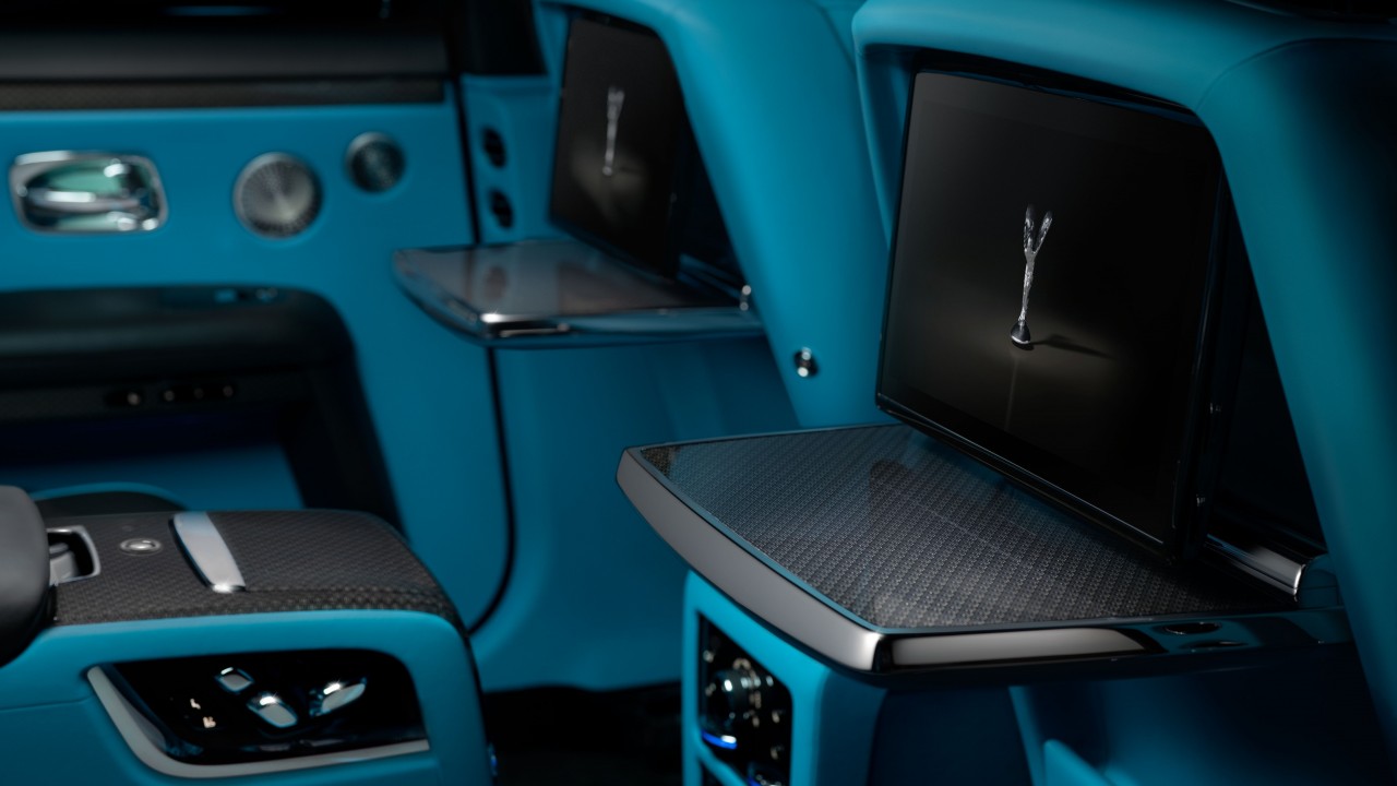 Om het duistere thema te completeren zijn details zoals de Spirit of Ecstasy, kofferklep afwerking en de herkenbare grille van Rolls-Royce uitgevoerd in donker hoogglans chroom. Het thema is in het interieur doorgevoerd, het veneer is vervaardigd uit een ruimtevaart waardige samengeweven combinatie van aluminium en carbon fiber draden. Wraith Black Badge is zeker niet zijn afkomst vergeten, indrukwekkende prestaties en een opzienbarend voorkomen worden nog altijd geaccompagneerd door verfijnd comfort. Een zijdezacht rijcomfort en ongekende afwerking zijn het resultaat van meer dan 400 uur vakmanschap.